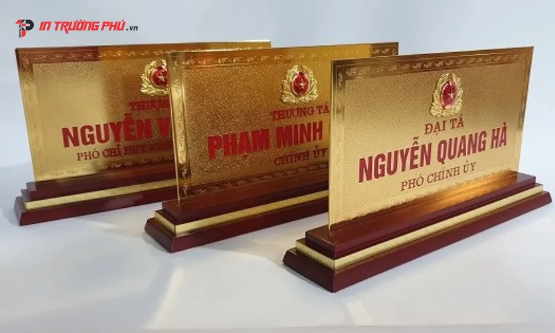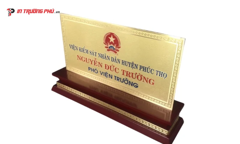 Trên bàn làm việc của một lãnh đạo, mỗi vật dụng không chỉ phục vụ công việc mà còn là biểu tượng khẳng định vị thế cá nhân. Biển chức danh mặt đồng chính là "nấc thang" đầu tiên giúp nâng tầm uy tín, tạo dựng niềm tin tuyệt đối với đối tác ngay từ cái nhìn đầu tiên. Không đơn thuần là tấm bảng ghi tên, đây là sự kết hợp tinh tế giữa nghệ thuật chế tác thủ công và công nghệ khắc hiện đại. Tại In Trường Phú, chúng tôi biến những tấm đồng thô sơ thành những tác phẩm nghệ thuật sang trọng, bền bỉ, phản chiếu phong thái đĩnh đạc của những người đứng đầu doanh nghiệp.