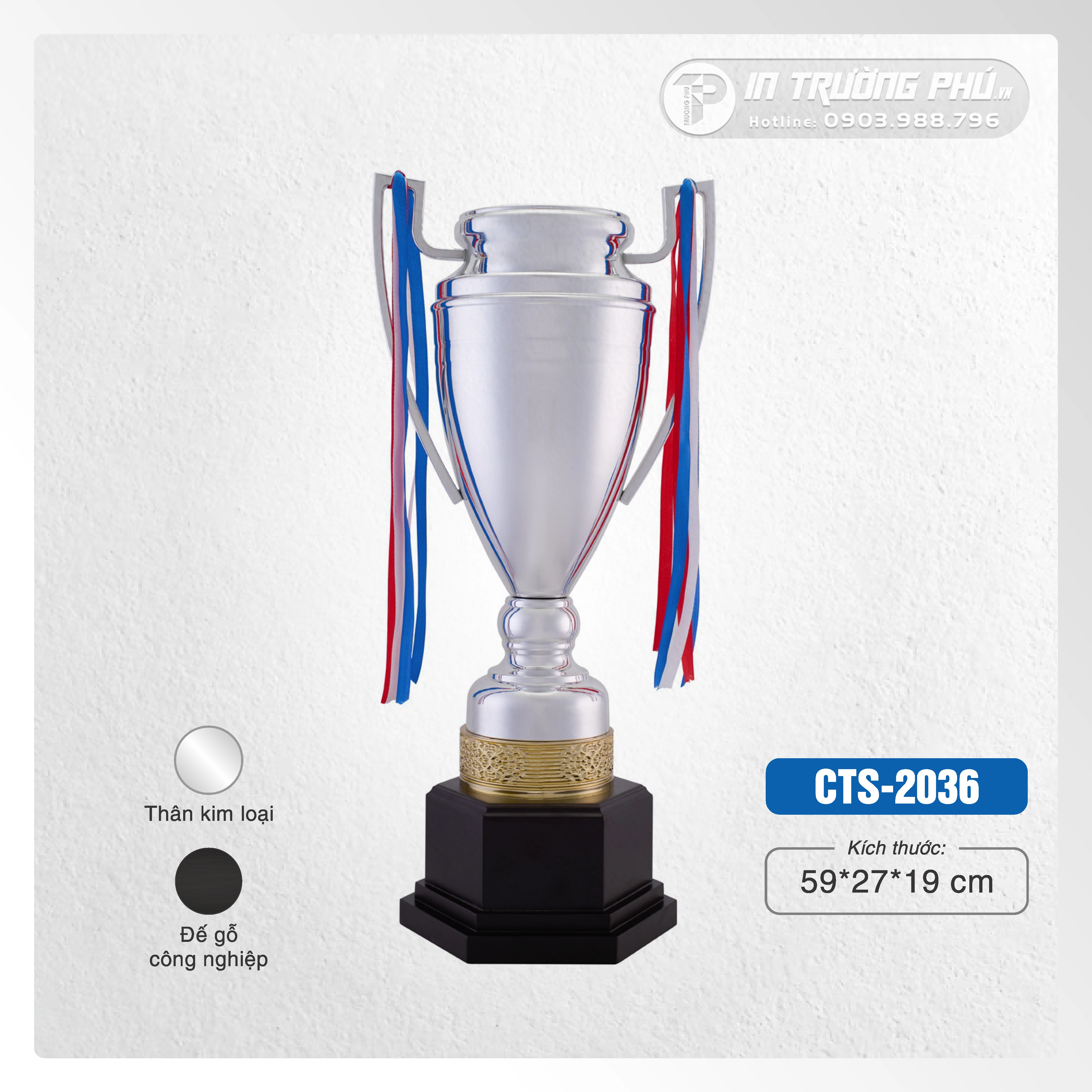 Cúp thể thao CTS-2035 / CTS-2036 / CTS-2037 của IN TRƯỜNG PHÚ được thiết kế để trở thành tâm điểm của mọi lễ trao giải, từ các giải đấu chuyên nghiệp đến các sự kiện nội bộ doanh nghiệp. Sản phẩm này là sự kết hợp hoàn hảo giữa nghệ thuật chế tác và chất lượng vật liệu, mang đến một vẻ đẹp cao cấp và sang trọng khó cưỡng. Mỗi chiếc cúp không chỉ đơn thuần là một giải thưởng, mà còn là một tác phẩm lưu niệm giá trị, có khả năng gây dấu ấn mạnh mẽ và tạo ấn tượng sâu sắc trong lòng người nhận và người tham dự. Đây chính là công cụ lý tưởng để vinh danh xứng đáng những cá nhân và tập thể xuất sắc, đồng thời nâng tầm thương hiệu và đẳng cấp cho mọi sự kiện.