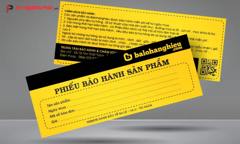 Phiếu bảo hành không chỉ là tờ giấy đi kèm sản phẩm mà là cam kết chất lượng, niềm tin và dịch vụ chuyên nghiệp. In Trường Phú cung cấp giải pháp in phiếu bảo hành đa dạng, từ giấy, nhựa đến điện tử, đáp ứng mọi nhu cầu doanh nghiệp. Hãy đặt in tại In Trường Phú để nâng cao uy tín thương hiệu và bảo vệ quyền lợi khách hàng một cách tối ưu nhất.