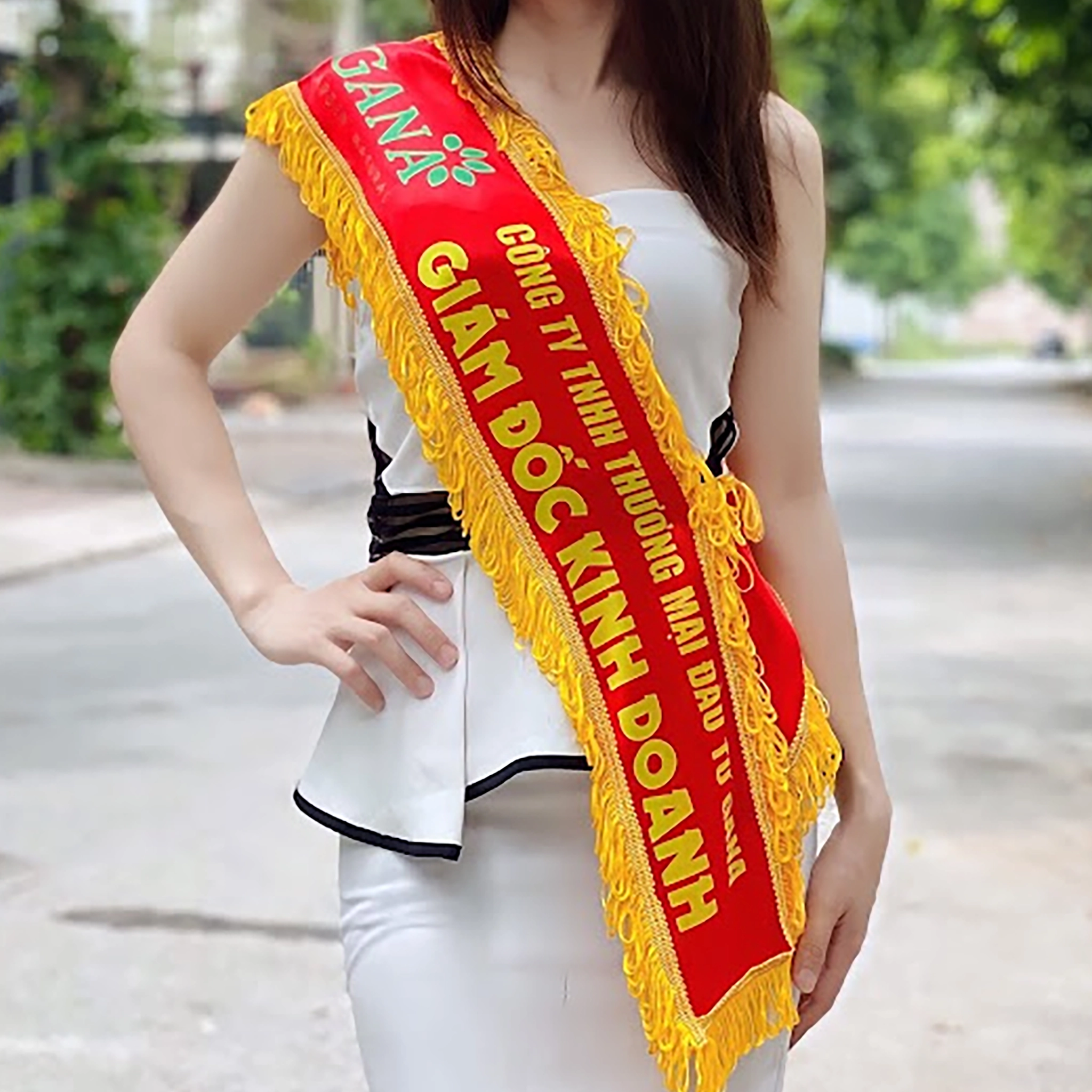 Dải băng đeo chéo từ vải phi Kaki không chỉ dành riêng cho các cuộc thi sắc đẹp mà còn là phụ kiện không thể thiếu trong nhiều sự kiện quan trọng.