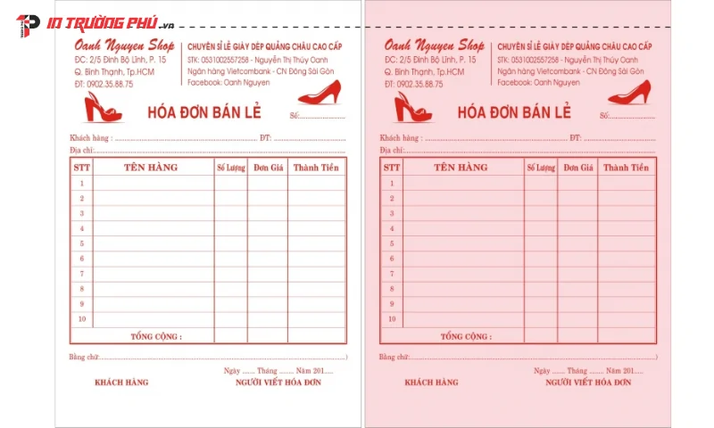 Hóa đơn 3–4 liên thường được sử dụng trong các hoạt động xuất – nhập hàng, giao nhận, ký nhận giữa nhiều bộ phận. Mỗi liên có màu sắc và chức năng riêng như: liên giao khách hàng, liên kế toán, liên lưu kho và liên nội bộ. Việc dùng hóa đơn nhiều liên giúp doanh nghiệp quản lý thông tin đồng bộ giữa các phòng ban và tránh thất lạc dữ liệu. In Trường Phú hỗ trợ in sắc nét, chống lem, chống nhòe, đảm bảo dễ viết và lưu trữ lâu dài.