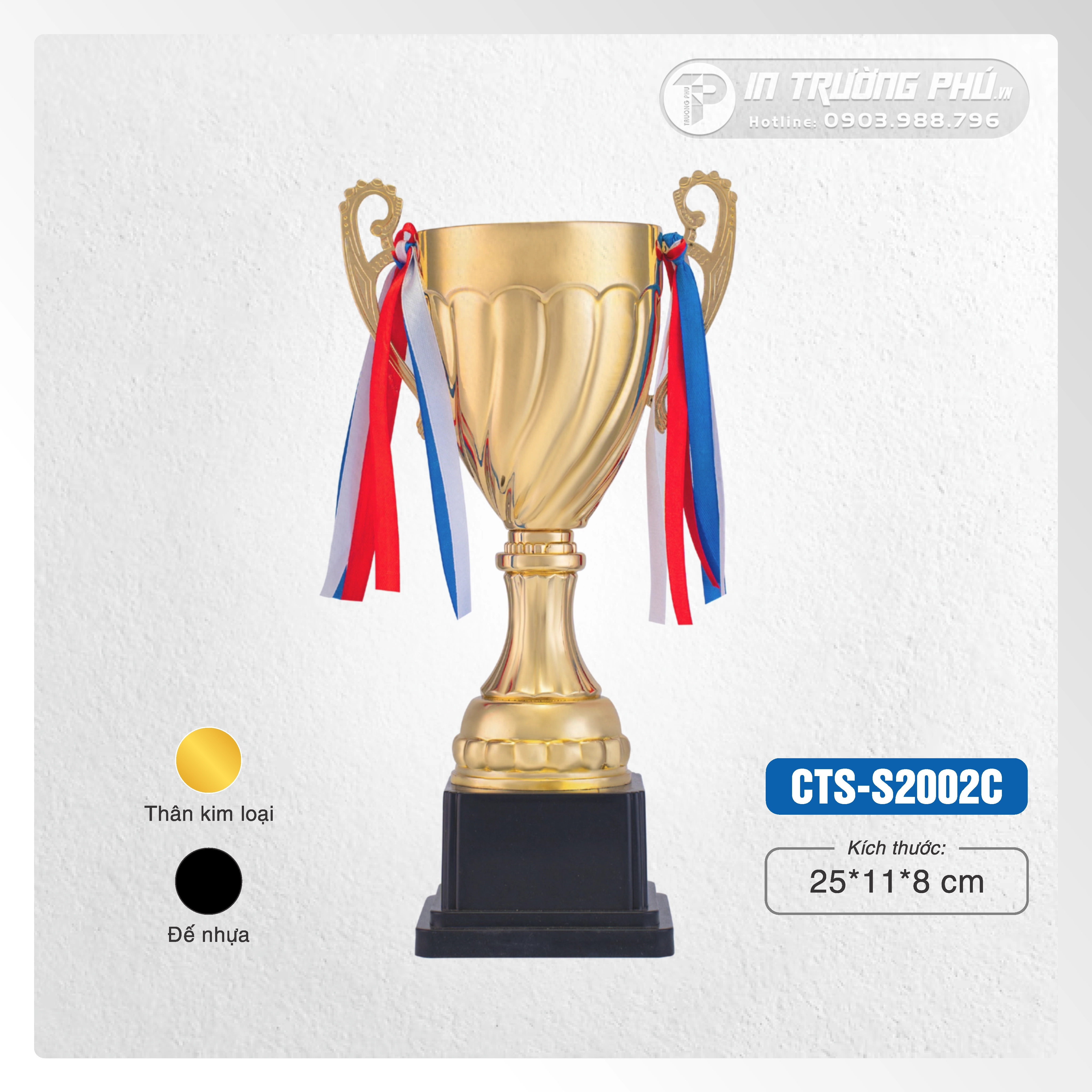 Cúp thể thao CTS-S2002 của IN TRƯỜNG PHÚ được thiết kế để trở thành tâm điểm của mọi lễ trao giải, từ các giải đấu chuyên nghiệp đến các sự kiện nội bộ doanh nghiệp. Sản phẩm này là sự kết hợp hoàn hảo giữa nghệ thuật chế tác và chất lượng vật liệu, mang đến một vẻ đẹp cao cấp và sang trọng khó cưỡng. Mỗi chiếc cúp không chỉ đơn thuần là một giải thưởng, mà còn là một tác phẩm lưu niệm giá trị, có khả năng gây dấu ấn mạnh mẽ và tạo ấn tượng sâu sắc trong lòng người nhận và người tham dự. Đây chính là công cụ lý tưởng để vinh danh xứng đáng những cá nhân và tập thể xuất sắc, đồng thời nâng tầm thương hiệu và đẳng cấp cho mọi sự kiện.
