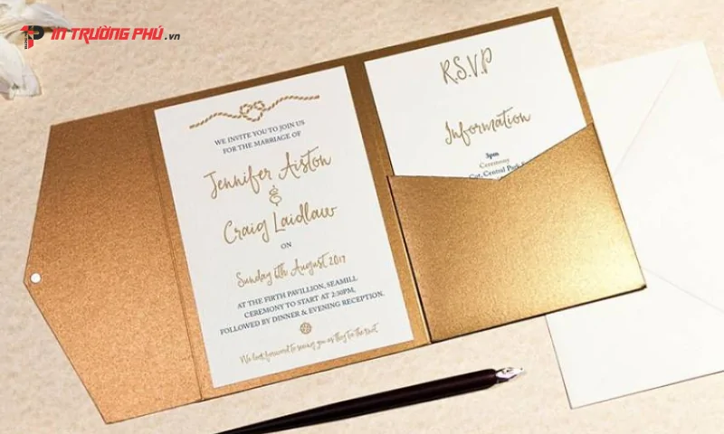 Một bộ giấy mời hoàn chỉnh phải là sự kết hợp đồng điệu giữa lớp vỏ bảo vệ bên ngoài và nội dung chi tiết bên trong để tạo sự bất ngờ. Quy cách sản xuất tại In Trường Phú được tính toán kỹ lưỡng nhằm tối ưu hóa trải nghiệm người dùng cũng như tính thẩm mỹ của sản phẩm.
