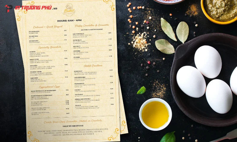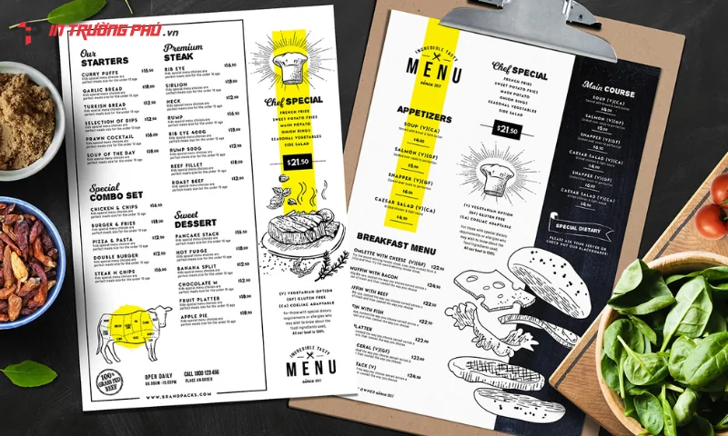 Trong lĩnh vực kinh doanh F&B, khách sạn và dịch vụ, thực đơn menus là công cụ trực quan thể hiện hình ảnh thương hiệu, định hướng lựa chọn và ảnh hưởng trực tiếp đến quyết định mua hàng. Một menu được thiết kế chuyên nghiệp, in ấn sắc nét sẽ nâng tầm giá trị không gian và tạo ấn tượng mạnh cho khách hàng. Cùng In Trường Phú khám phá khái niệm, phân loại, công nghệ in và bảng giá chi tiết trước khi chọn giải pháp phù hợp nhất cho thương hiệu của bạn.